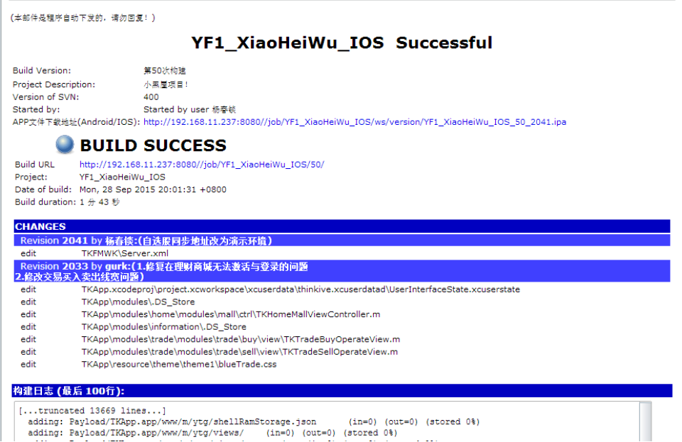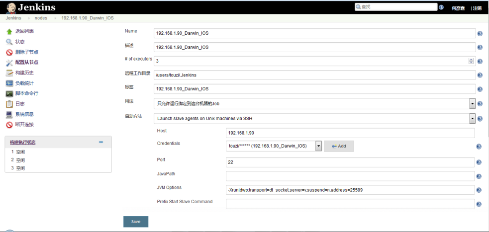 l 持续集成:添加 Jenkins 以后,会有一个 Jenkins 主机器。Subversion构建工具包已安装在该服务器上。Jenkins使用该构建工具包并通过 Subversion下载源代码,同时触发构建工具包生成构建版本。所有的项目都在在 Jenkins 主机器上进行管理。Android打包,AppScan扫描,Web项目开发环境发布在Jenkins master机器上运行,IOS打包(192.168.1.90_Darwin_IOS)作为Jenkins 从机器提供服务。它们由 Jenkins 主机器控制,并运行安装项目。