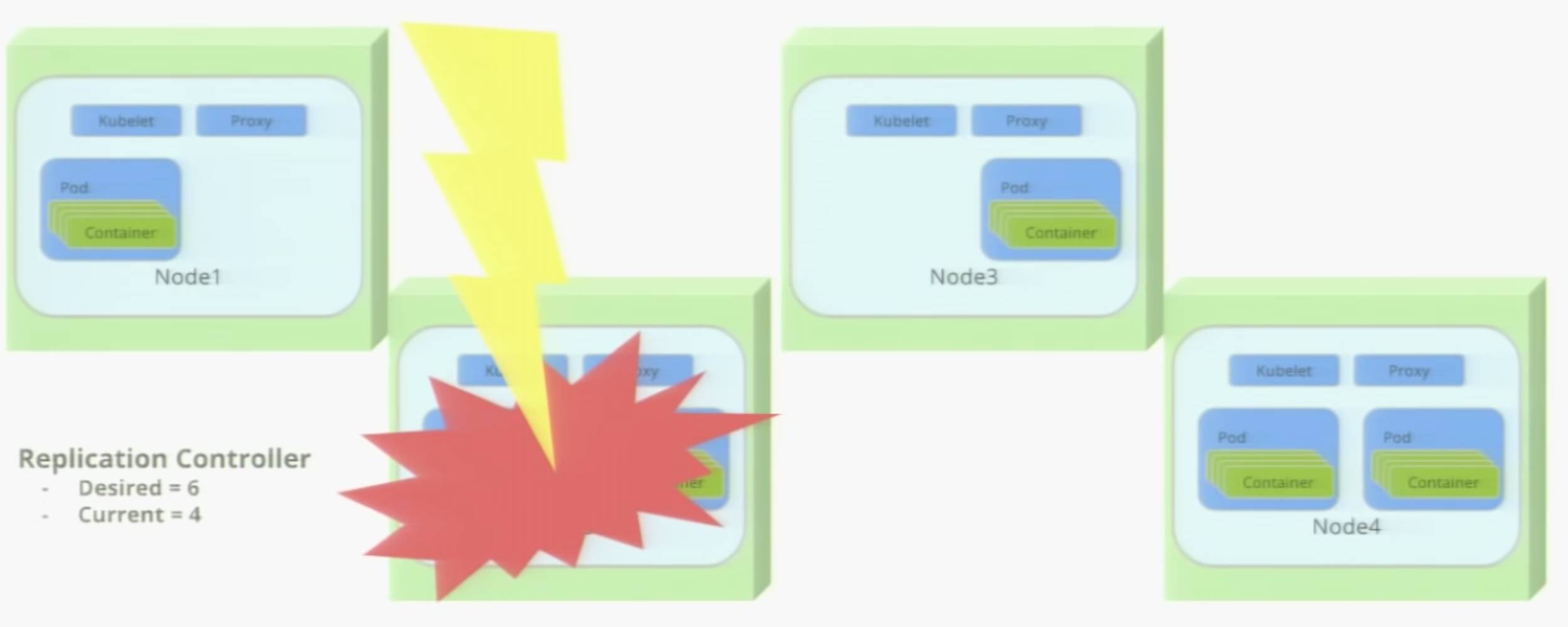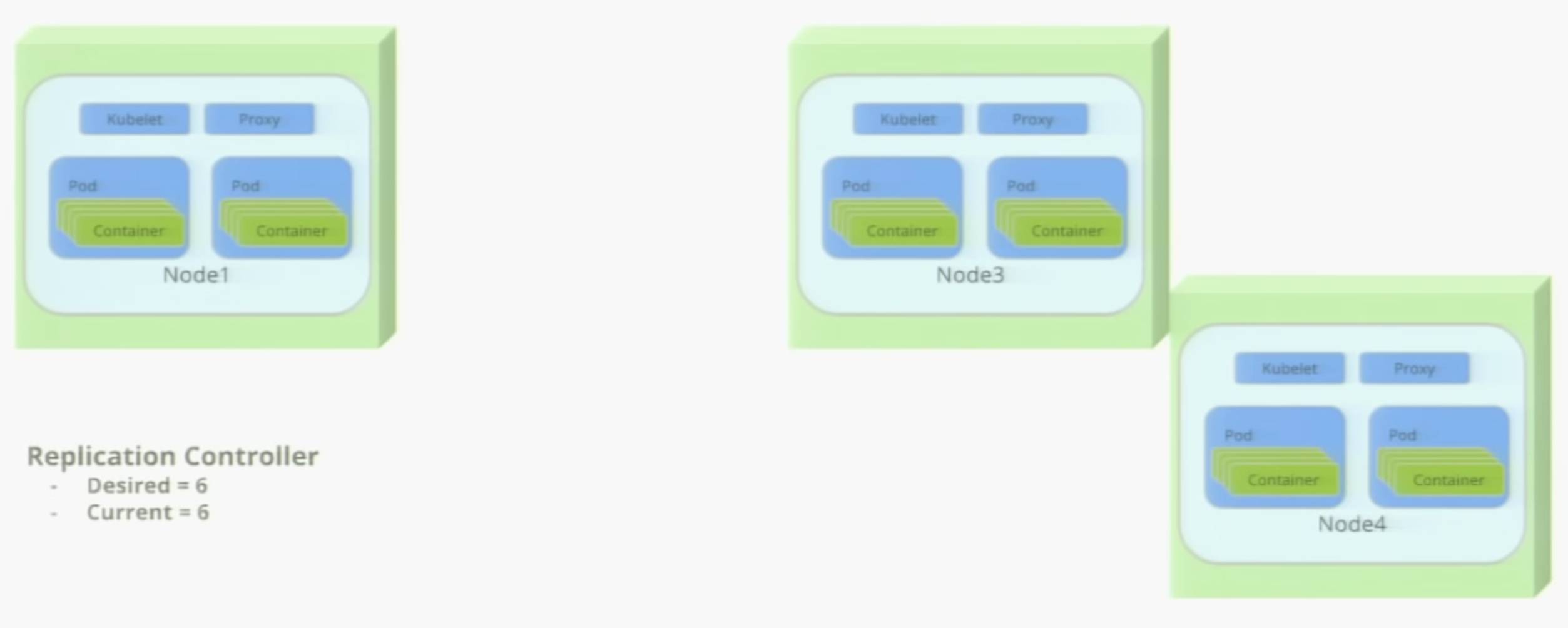 Replication Controller 会自动监控到这个事故,并且在可以的节点里寻找可用资源,部署这两个实例,直到最终集群里有6个实例。
