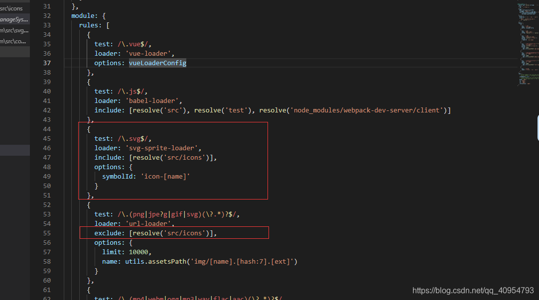 1,安装svg-sprite-loadernpm install svg-sprite-loader --save-dev2,进行webpack配置,在webpack.base.conf.js的rules数组内添加如下: 3,在src文件夹下新建icons文件夹,并在icons文件夹新建index.jsimport Vue from 'vue'import SvgIco...
