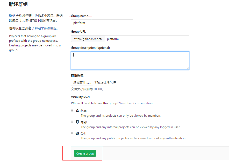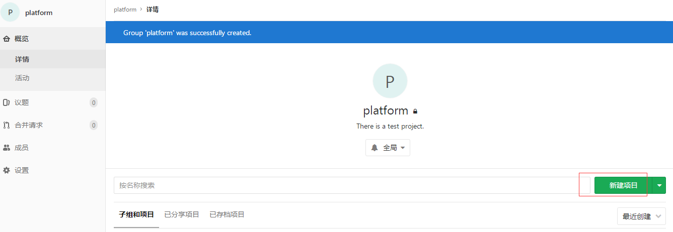 我公司一个项目下有很多子项目,所以首先创建一个群组: