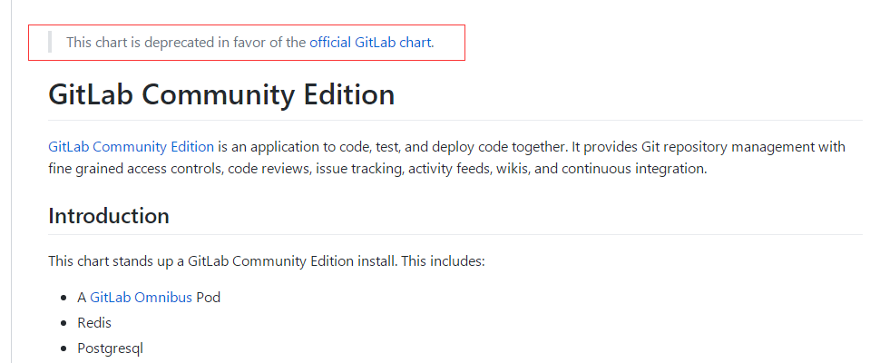 最一开始使用的是helm安装gitlab,网上的文档应该全部都是使用的这个chart:https://github.com/helm/charts/tree/master/stable/gitlab-ce