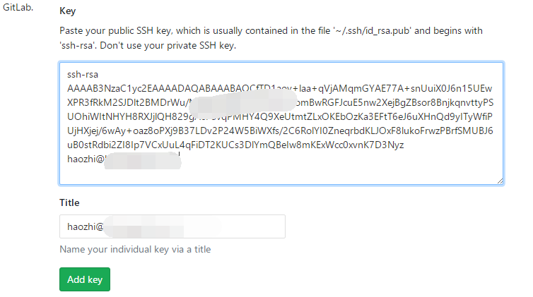 如果没有Key需要使用ssh-keygen -t rsa -C "your@email.com"生成对应的Key。