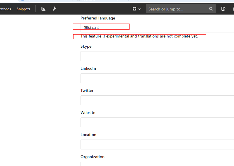 语言更改,注意:此时翻译是实验性的,更改后需要重新登录
