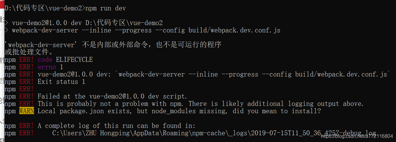 如果安装过程中等待太久,我们难免会不耐烦,所以会中途关闭项目。那么我们接下操作 npm run dev 肯定是报错的