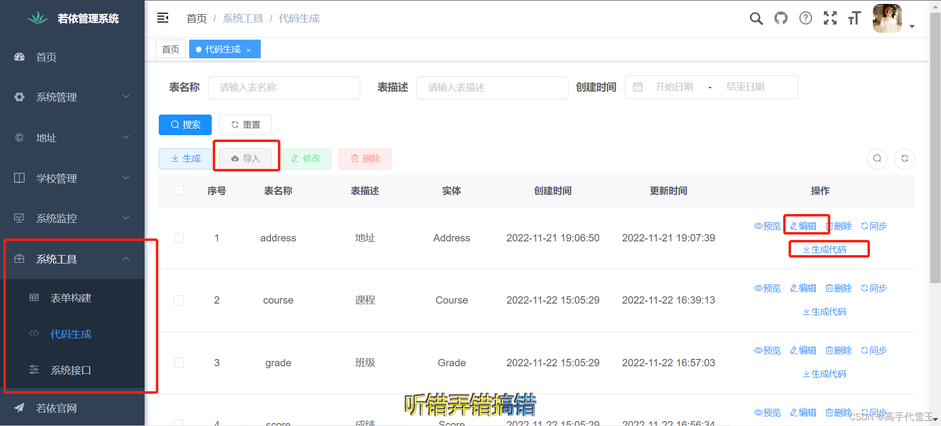 - 在系统工具 -代码生成里选择导入 导入你的表
