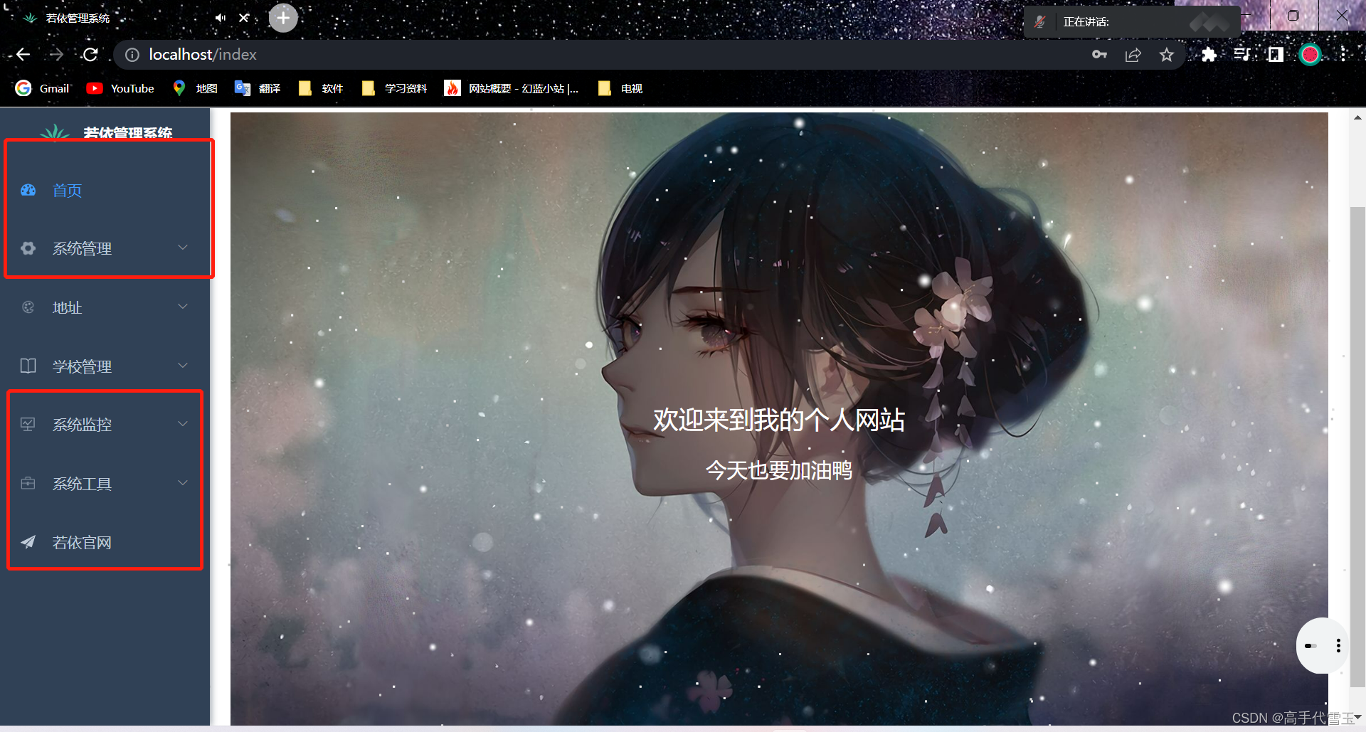 这是成功后的页面,我自己已经把首页给改掉了(多余的部分都是我自己添加的)。