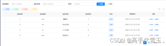 深入的原理可以访问若依前后端分离版,通俗易懂,快速上手【若依框架】代码生成详细教程_萌宅鹿同学的博客-CSDN博客_若依主子表代码生产创建数据表在系统工具 -代码生成里选择导入 导入你的表可以选择编辑修改你的备注等信息点击生成代码-直接生成将生成的代码复制到你的项目对应位置(前后端xml都有)默认生成的add方法的id是自增方法,工作中一般会替代一个18为的id或者其他位数的id配置路由(你可以简