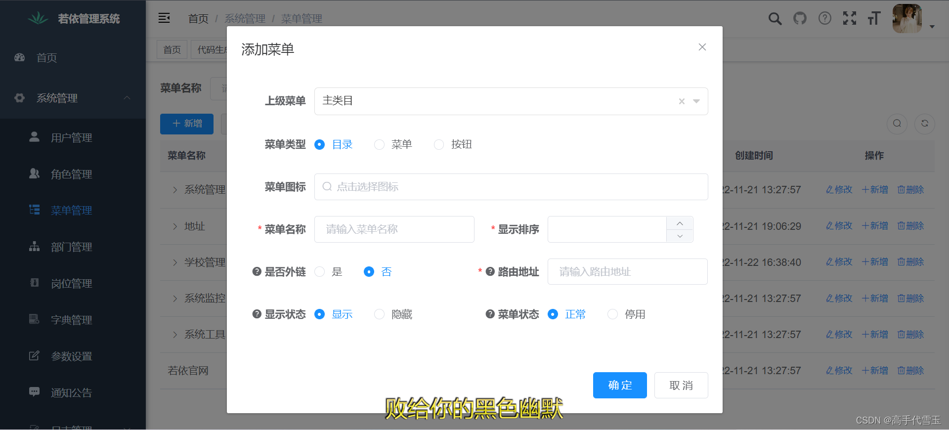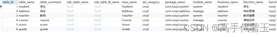 详细的步骤可以看这篇大佬的博客:【若依框架】代码生成详细教程_萌宅鹿同学的博客-CSDN博客_若依主子表代码生产
