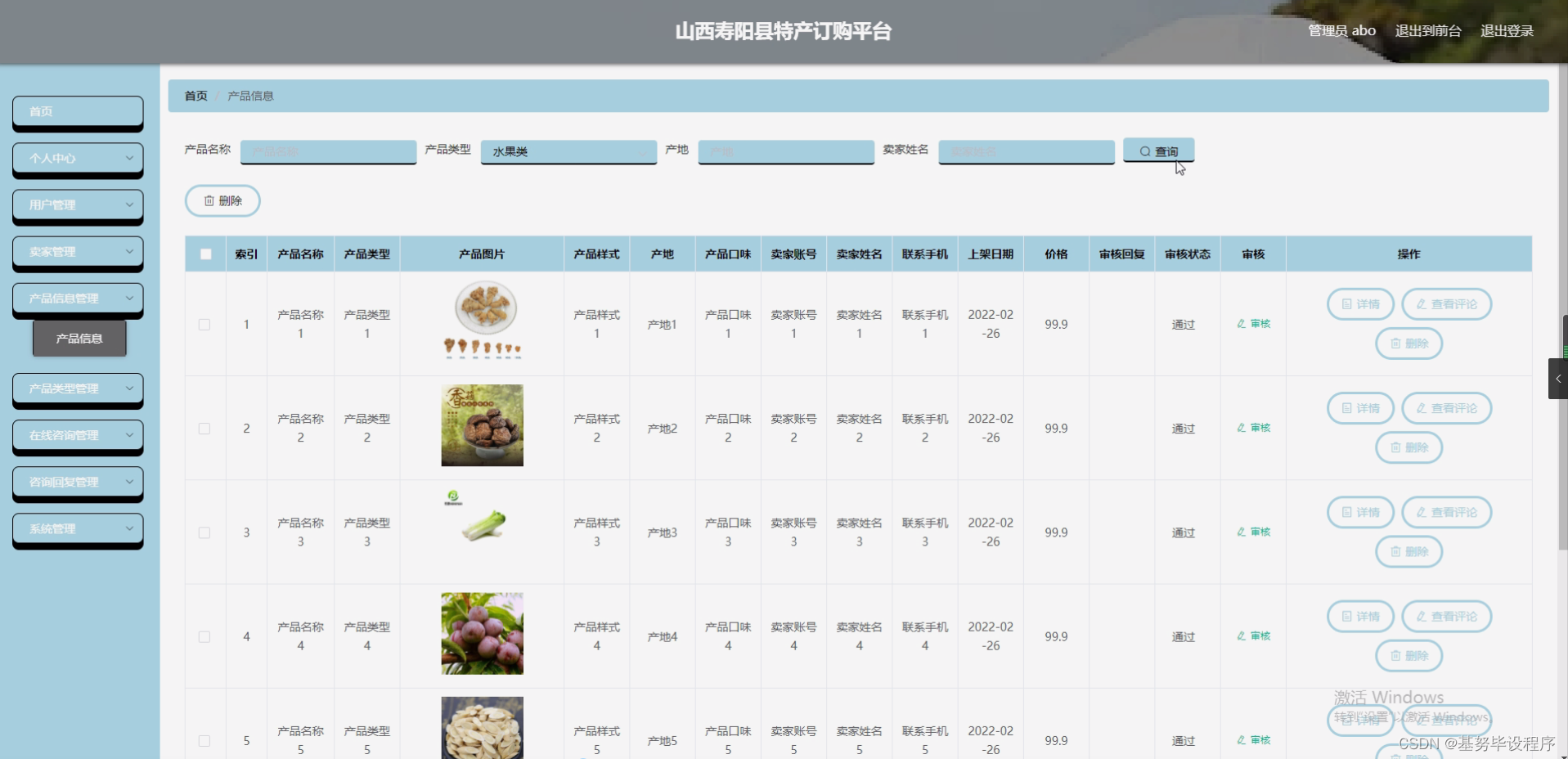 在互联网经济高速发展的今天,电子商务已经渗透到人们生活的方方面面,特别是在地方特产销售领域,电子商务平台能够有效地打破地域限制,将地方特色产品推向更广阔的市场。山西寿阳县作为中国历史文化名县,拥有丰富的特产资源,如寿阳柿饼、寿阳核桃等,这些具有地方特色的产品深受消费者喜爱。然而,目前寿阳县特产的销售仍然依赖于传统的线下渠道,缺乏一个集中展示和销售的平台。因此,构建一个专门针对寿阳县特产的在线订购平台,不仅有助于提升地方特产的知名度和销量,还能够促进当地经济的发展。采用HTML、CSS、JavaScript和Vue框架构建直观易用的前端用户界面,Java语言和SpringBoot框架实现后端逻辑处理,MySQL数据库进行数据存储与管理的方案,能够满足现代电子商务平台的需求。Eclipse或IntelliJ IDEA作为集成开发环境,配合Tomcat服务器、JDK1.8和Maven3.3.9等工具,进一步提高了开发效率和系统稳定性。