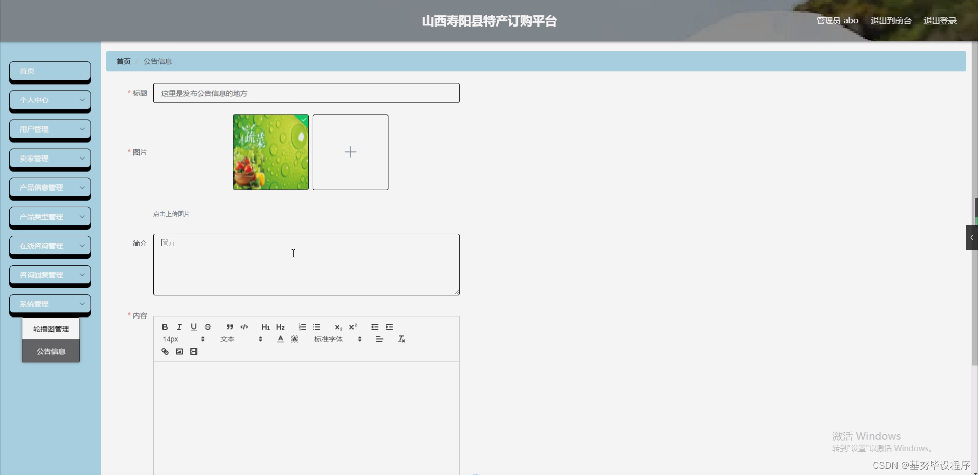 开发山西寿阳县特产订购平台对于推广地方特产、促进当地经济增长以及满足消费者多样化需求具有重要的意义。首先,该平台能够为消费者提供一个便捷的购物渠道,使他们能够轻松地了解和购买到正宗的寿阳特产,无需亲自前往产地。其次,对于生产商而言,平台提供了一个展示和销售产品的窗口,有助于拓宽销售渠道,提高产品销售额。此外,平台的建立还能够促进寿阳县特产的品牌化和市场化,通过品牌效应带动整个产业链的发展。在技术层面,该项目的开发将使学生获得宝贵的全栈开发经验,尤其是在实际工作中前后端分离的应用架构、数据库设计和电子商务平台开发方面的实践技能。综上所述,山西寿阳县特产订购平台的建设不仅是响应电子商务发展趋势的创新举措,也是推动地方特产经济发展的重要步骤。它的成功实施预计将对寿阳县特产的销售、品牌推广和经济增长产生积极而深远的影响。