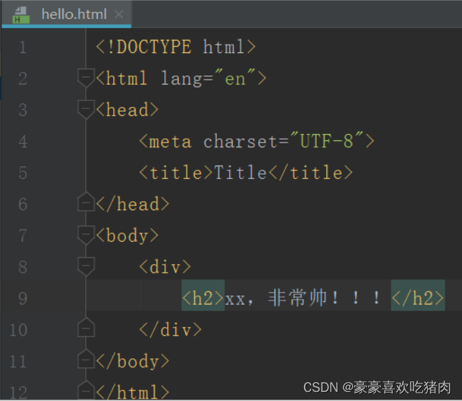 h2中要输出一句话:xx 非常帅。前面的 xx 是要渲染的数据。