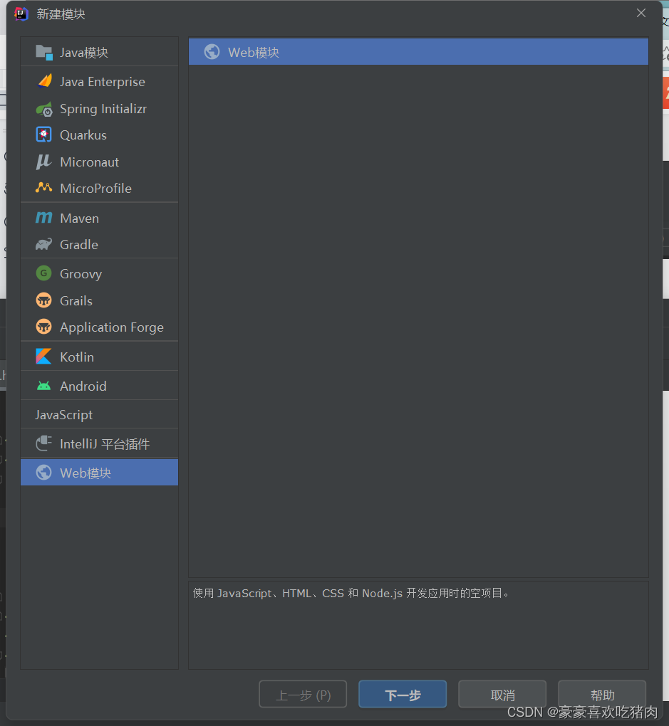 然后新建一个 module:选中 static web ,静态 web 项目: