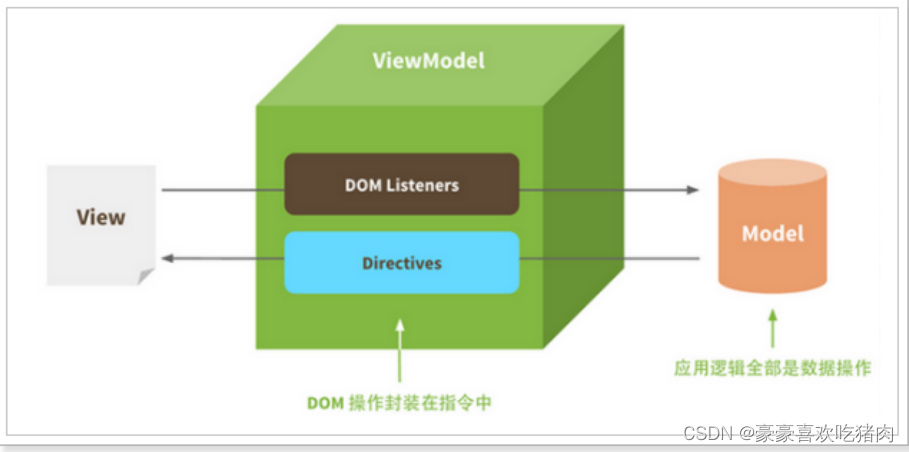 - VM:即View-Model,模型与视图间的双向操作(无需开发人员干涉)