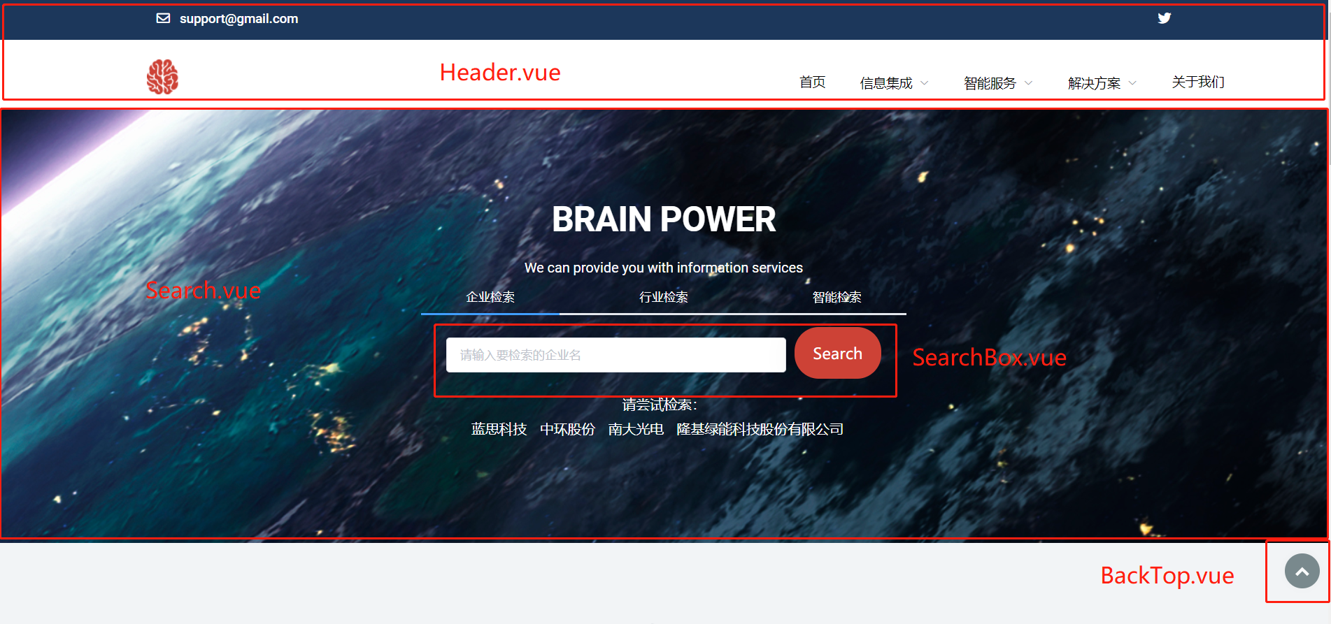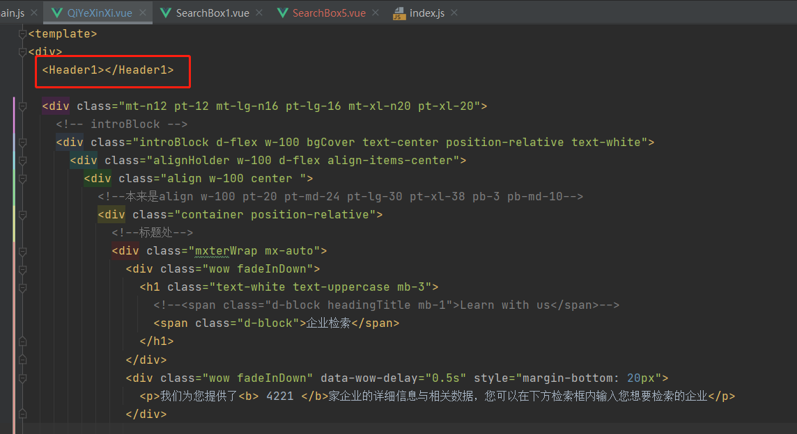 在“企业检索”处,我复用了Header.vue,而不用拷贝Header.vue里的代码