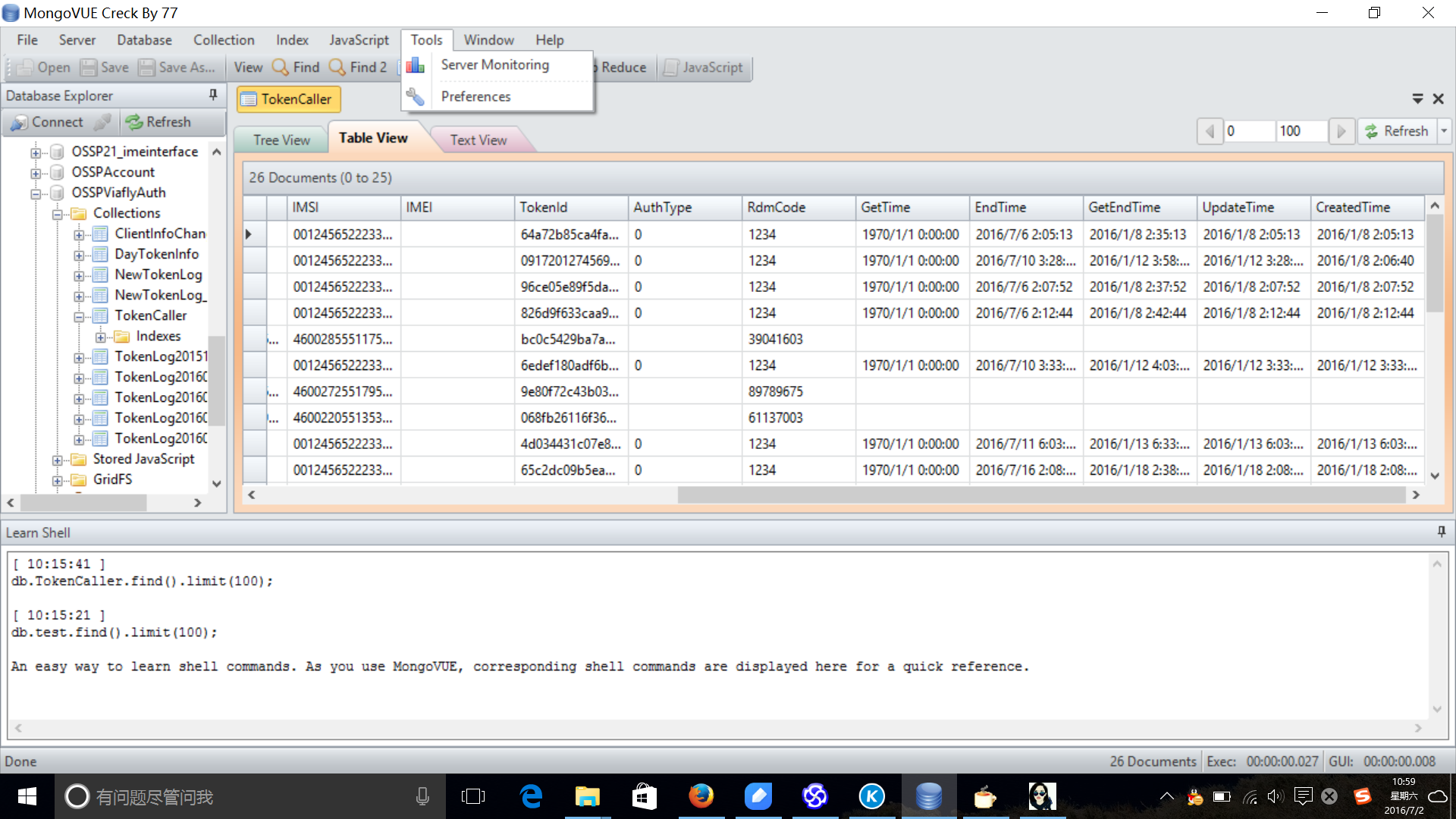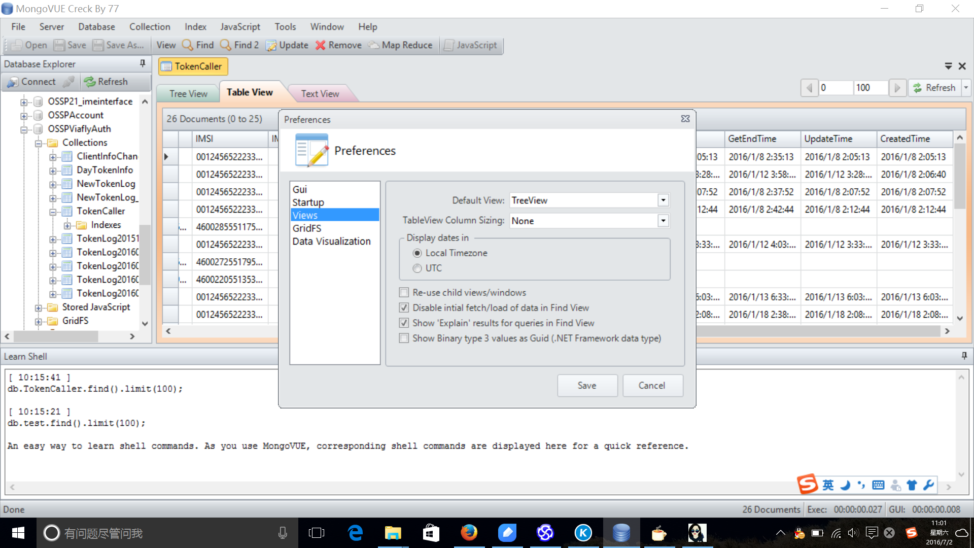 (2)使用MongoVue客户端软件操作mongodb数据库时看到的数据和实际保存时间相差8个小时为什么?
