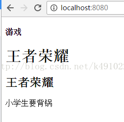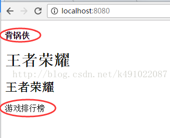 运行的结果如下图,可以发现父组件的内容 “游戏排行榜” 在父组件作用域内编译,并且显示在子组件的默认slot中,而子组件中的内容 "背锅侠"在子组件作用域内编译,显示在子组件中。