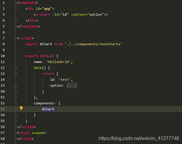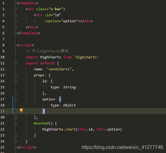 我由于在vue项目中刚好要使用韦恩图想用highcharts然后按照步骤1、npm install highcharts --save2、创建组件<template><div class="x-bar"><div :id="id":option="option"></div>...