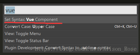 按下快捷键“ctrl+shift+p”,在打开的packages输入框中输入vue,选择“Set Syntax:Vue Component”进行加载。