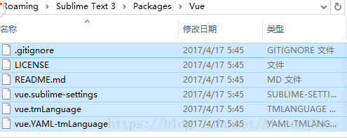在Vue文件夹中,将vue-syntax-highlight-master压缩包解压后的所有文件拷入。