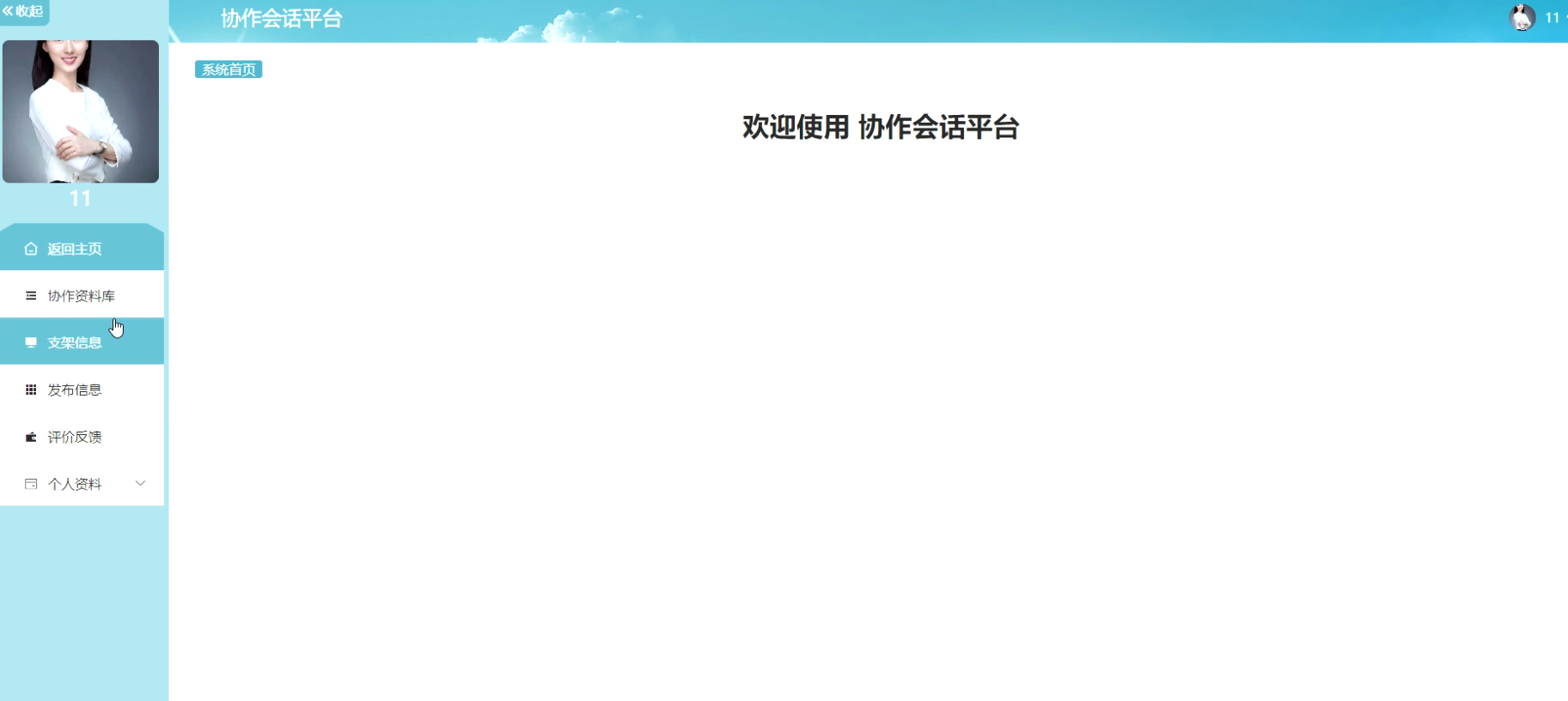 教师进入主页面,主要功能包括对协作资料库、支架信息、发布信息、评价反馈、个人资料等进行操作。教师主页面如图5-12所示: