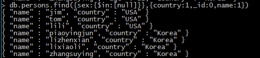 > db.persons.find({books:{$size:4}},{_id:0,name:1})