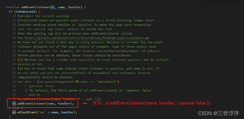 Vue使用echart报错“Unable to preventDefault inside passive event listener invocation”