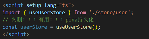 解决方案:在入口文件App.vue里手动调用一次需要实例化的store