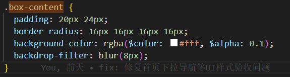 开发时路径:编译后路径:引用路径:如上1.1图示。只能让它作用的背景变模糊,当有元素拖动到它下面时,不会模糊下面的元素。仅仅是当前背景变模糊。这个属性可以让你为一个元素后面区域添加图形效果(如模糊或颜色偏移)。 因为它适用于元素背后的所有元素,为了看到效果,必须使元素或其背景至少部分透明。很多时候我们需要动态渲染某些“选中”、“切换”、“不同状态”等样式或者需要计算才能得到的样式,这时候我们就可以
