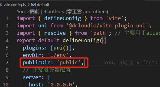 1.2 由于uni-app——小程序的编译性质,静态图片等资源文件需放在/public/static/images下(编写页面时使用,部署到生产环境时移除),同时还须在vite.config.ts文件的配置项加上publicDir: ‘public’: