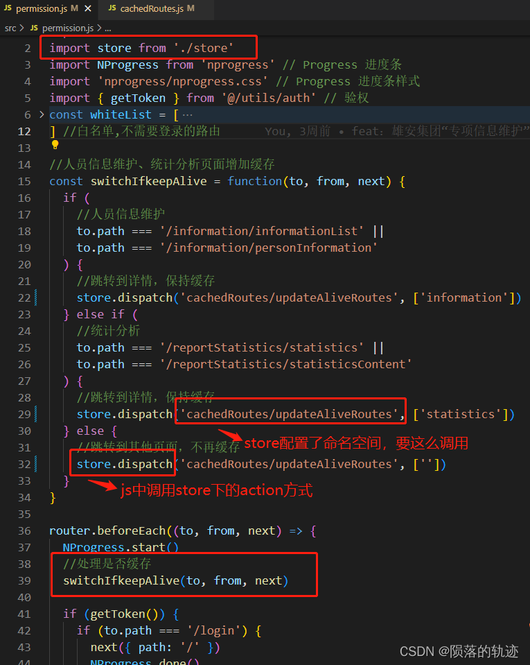 目的:当从列表页面进入详情,缓存字段增加组件名称,当从该列表页面进入其他页面,清除缓存,缓存字段去掉该组件名称。