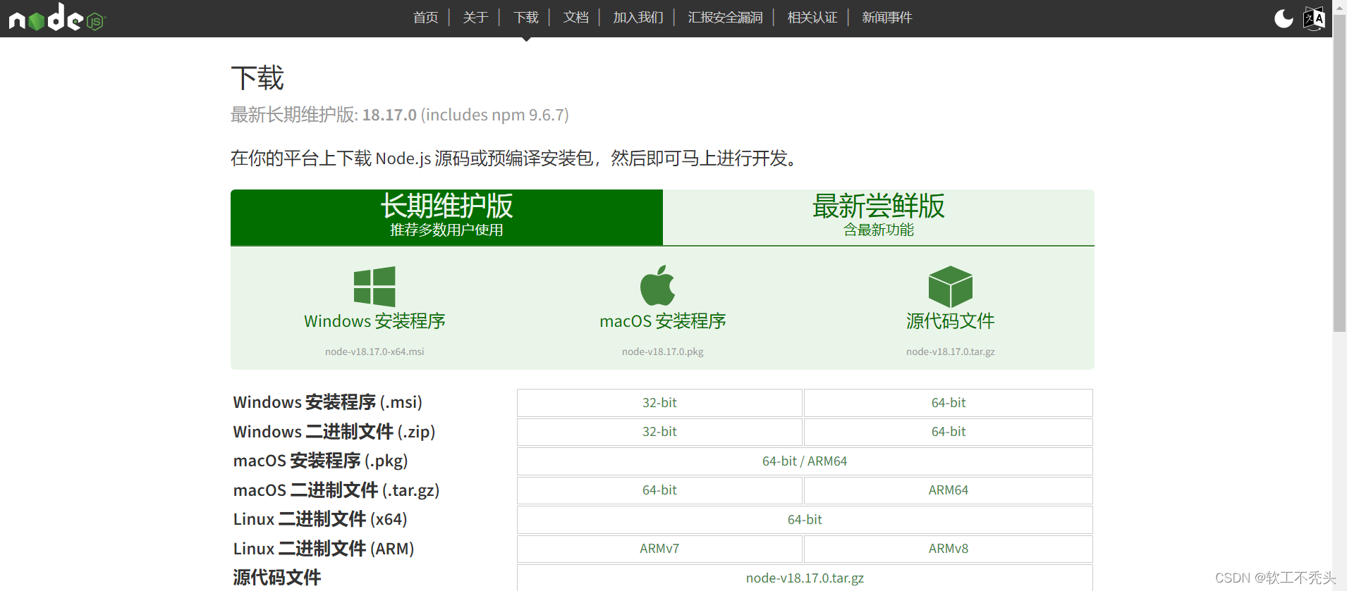 下载node.js地址