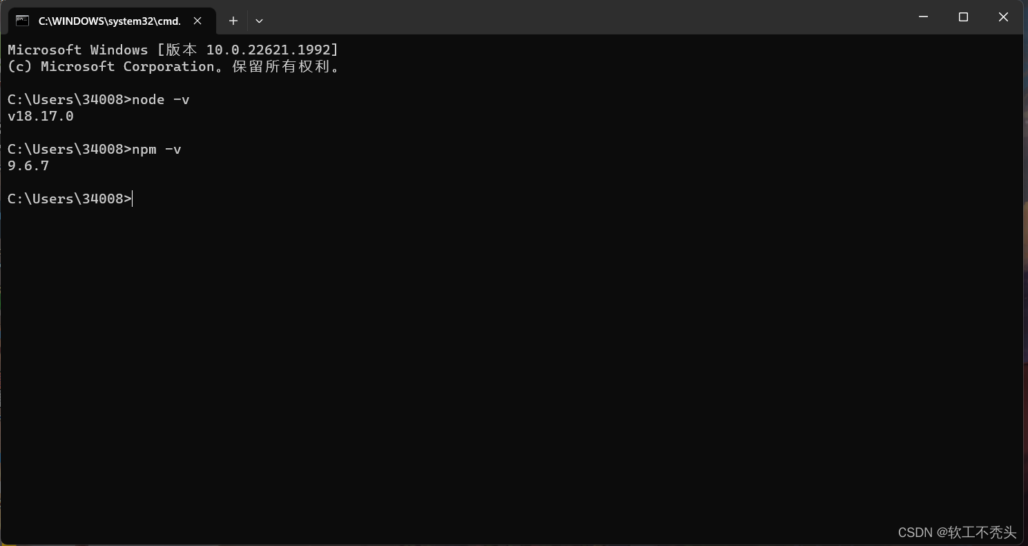 2.下载安装好node.js以后可以检查版本并且检查一下是否安装成功