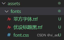 1、在项目的assets文件夹中创建fonts文件夹,将下载好的.ttf字体文件放进去,并创建font.css文件