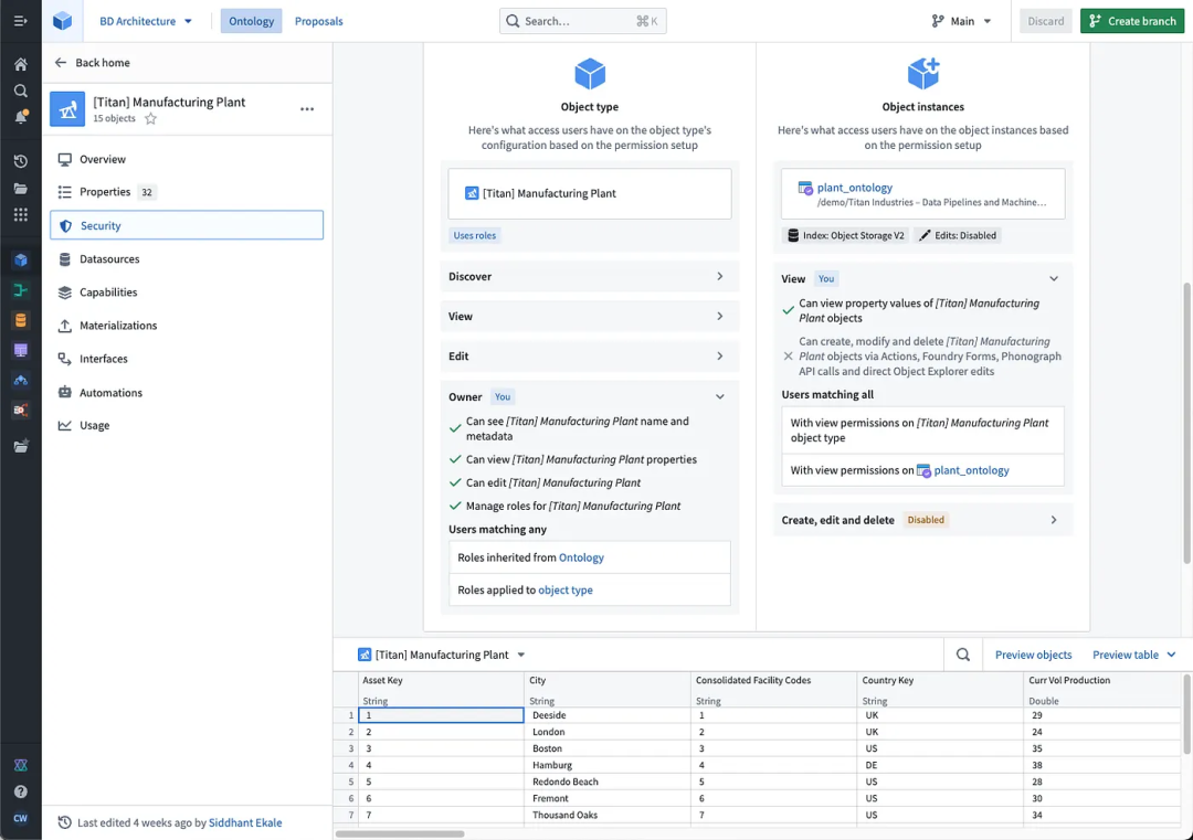当我们的本体中承载了企业的核心数据后,安全便成了头等大事。我们不仅要定义对象之间的关系(Links)和可执行的操作(Actions),更要确保无论是人类用户还是 AI,都只能访问其被授权的数据。