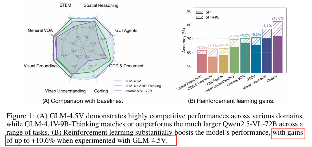 图 1(B):强化学习带来最高 10.6% 的绝对增益