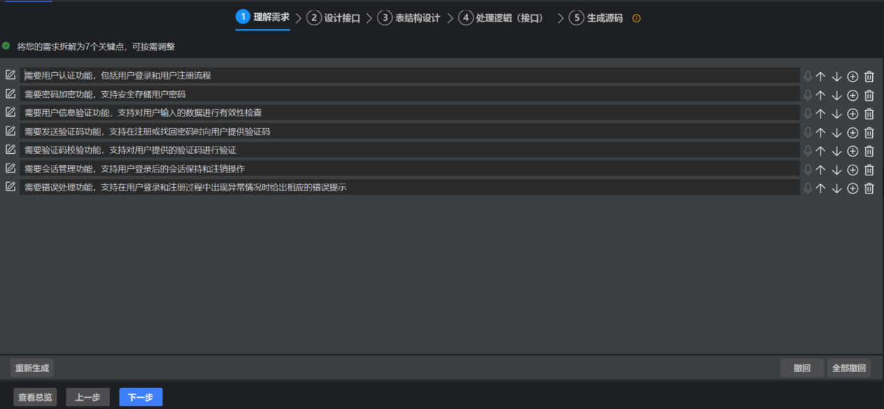 输入完我特意瞟了眼界面,没有任何“Token剩余”的提示,只有清晰的需求拆解进度。等我去接了杯热水回来,发现AI已经把我的需求拆成了7个关键点,连“会话令牌生成”“用户名重复校验”这些我没明说但实际需要的功能,都被自动补充进来了。