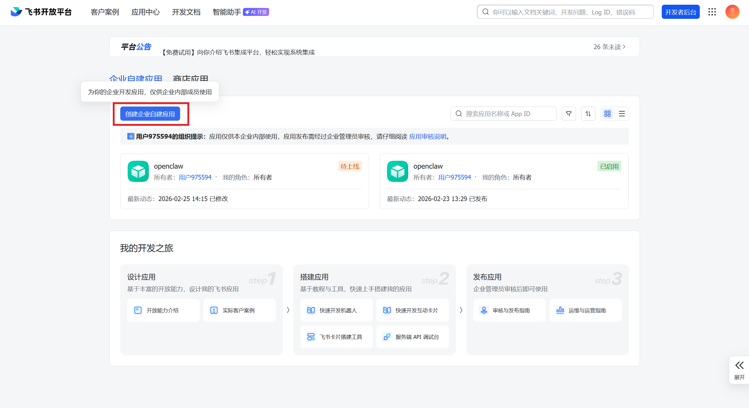 进入创建企业自建应用