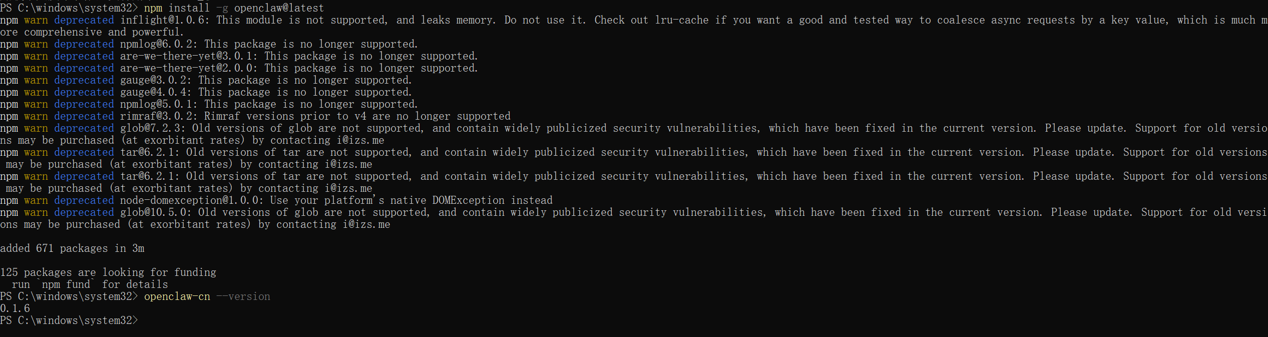 1.将中文版的openclaw安装到全局(这一步运行后等待时间可能较长):