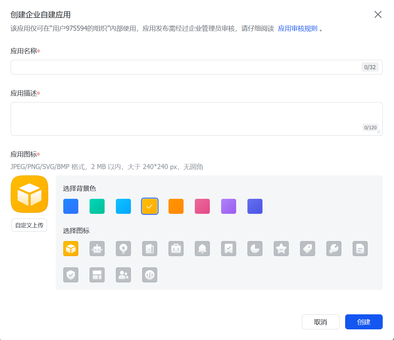 应用名称、应用描述和背景色都是自定义,大家自己弄就可以