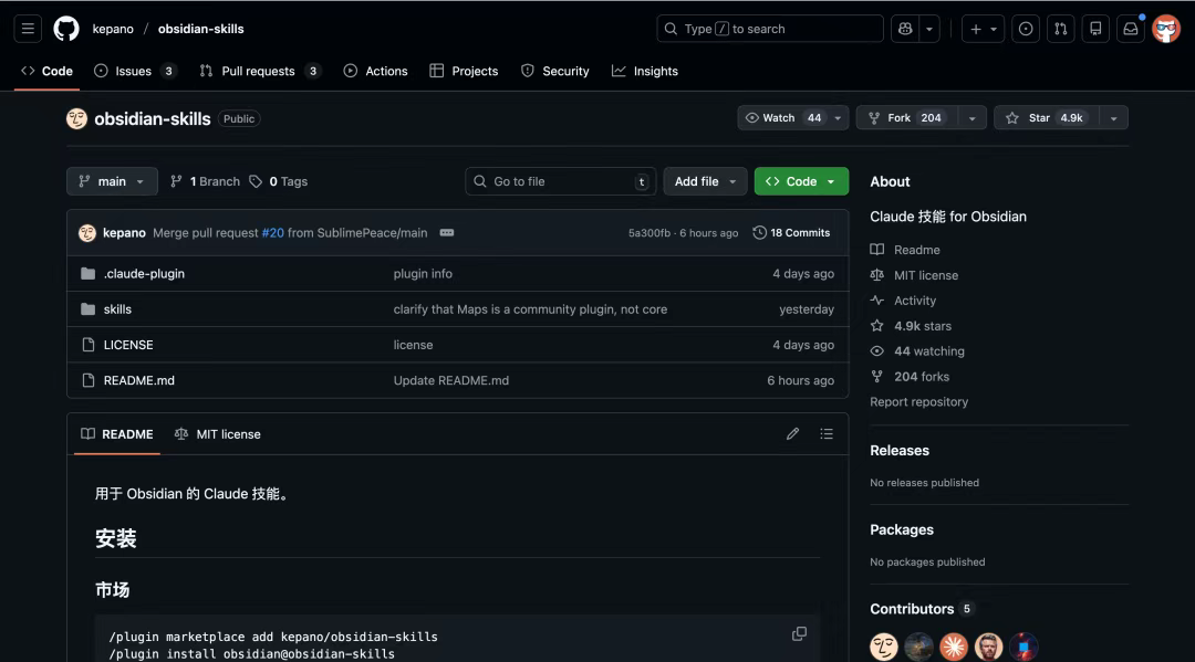 项目地址:https://github.com/kepano/obsidian-skills