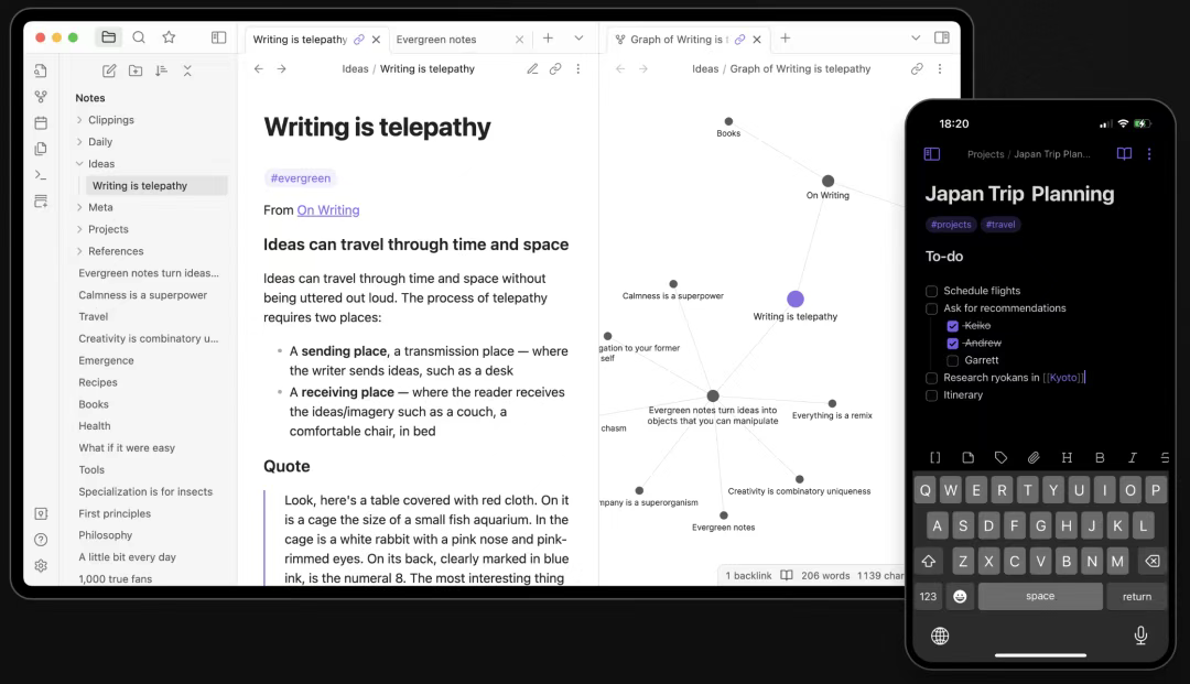 设计美学:Kepano 本人也是设计师,这个库里的 CSS 排版和 Markdown 格式范例非常优雅,值得模仿。