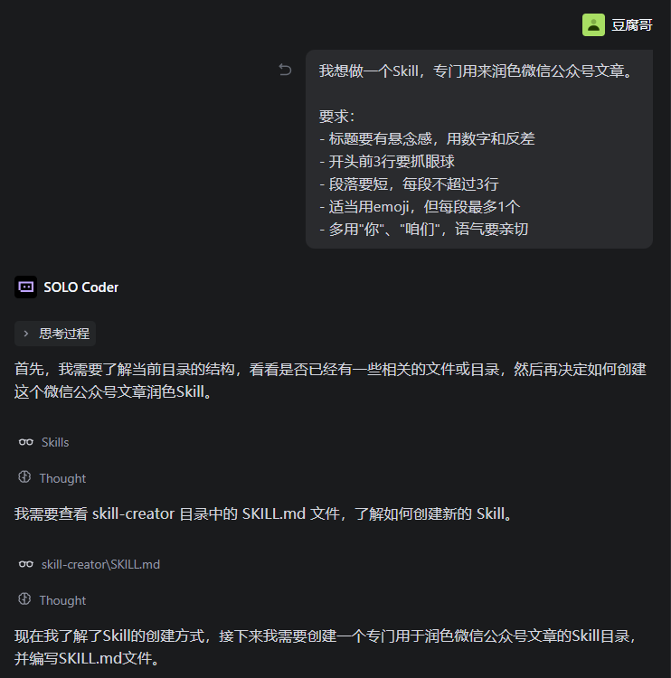Skill创建完成后,以后只需说:
