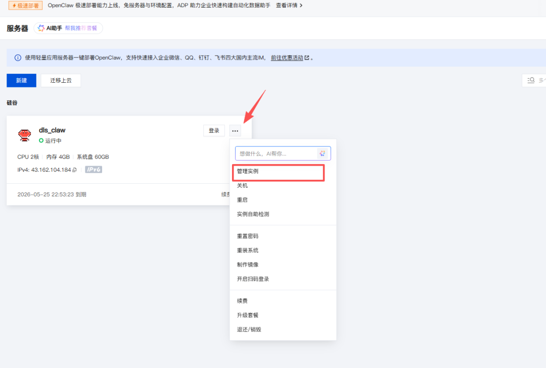 到这里,你就购买了自己的服务器,以后有关openclaw的一些操作都要在这个服务器进行。