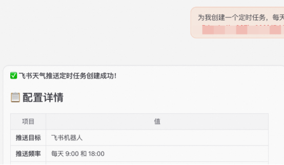 创建任务:定时查询天气 → 推送至[飞书Webhook地址]