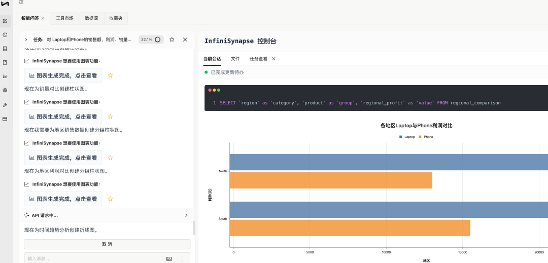 另外解释下,为什么先写 markdown再转换成 word, 最后再利用 InfiniSynapse 对 word 最修改。markdown特别适合写主体框架,AI编辑效率也是最高的。接上回 excel 那篇,我们希望上次的分析,除了产出 excel ,也能产出一份分析报告。这个报告要word 格式的,而且最好也是图文并茂。图文并茂,你可以下载下来,自己进行二次编辑。这里先提醒他做可视化分析,然后