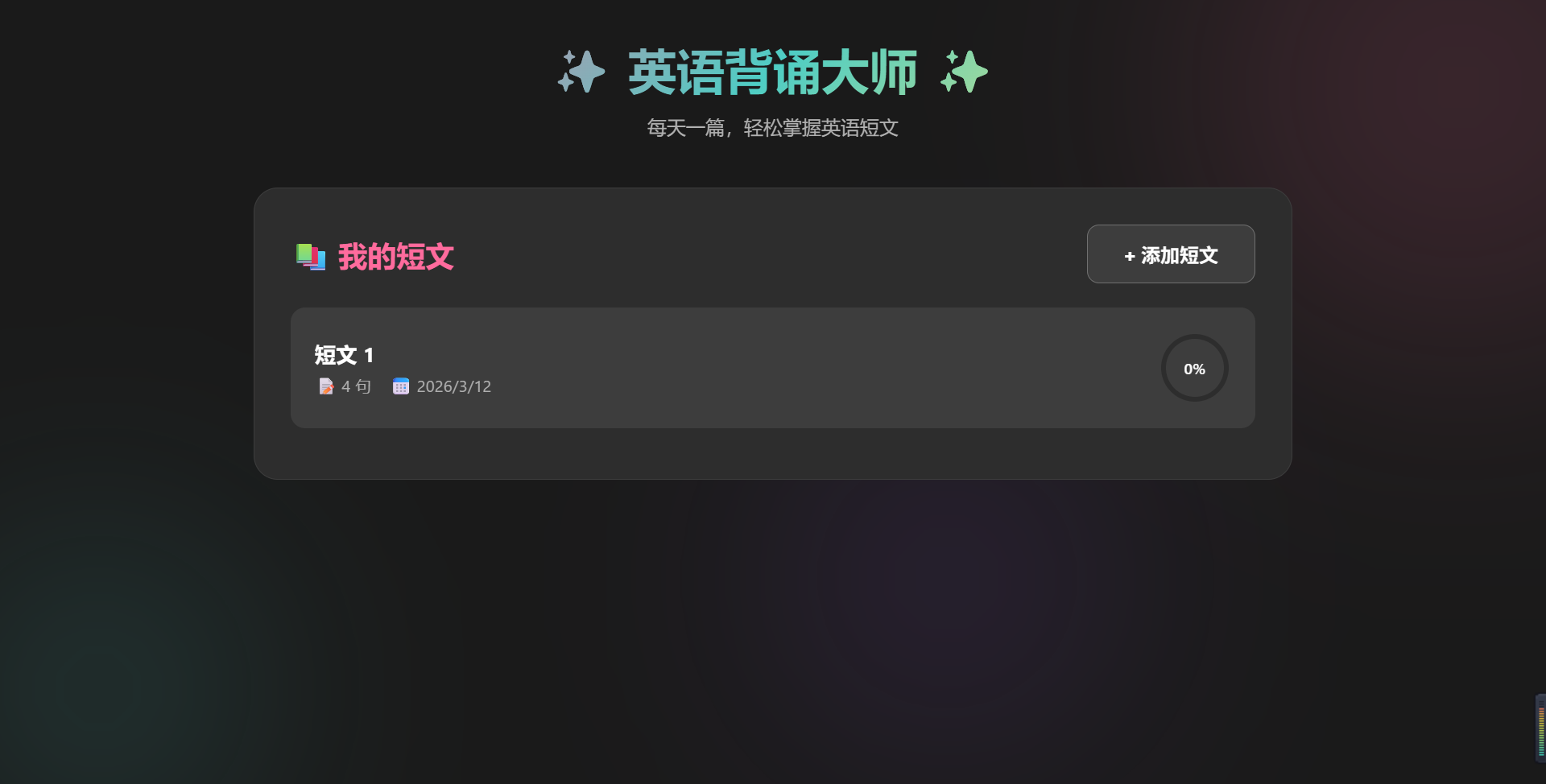 我现在想做一个英语学习的程序,这个程序需要帮助我背诵英语短文: