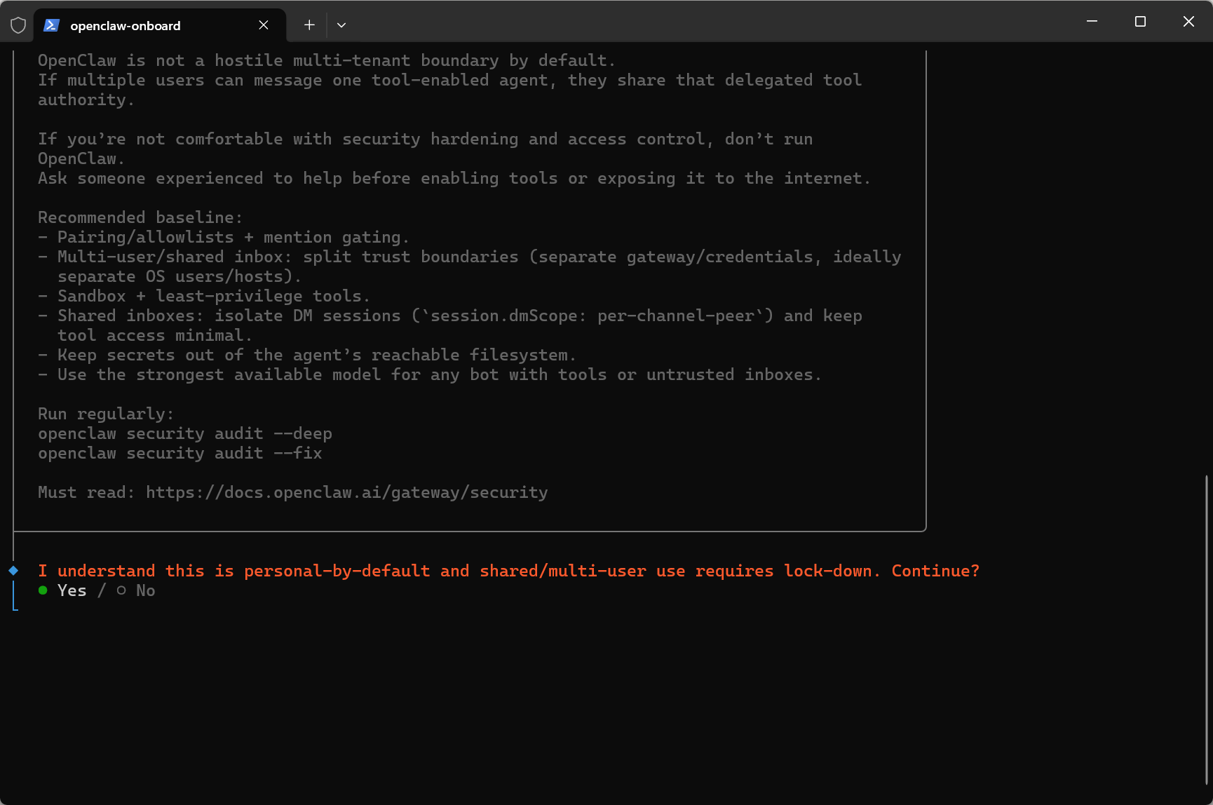 - 启动方式 Web UI,回车后会提示有网页自动打开,进入 http://127.0.0.1:18789/。