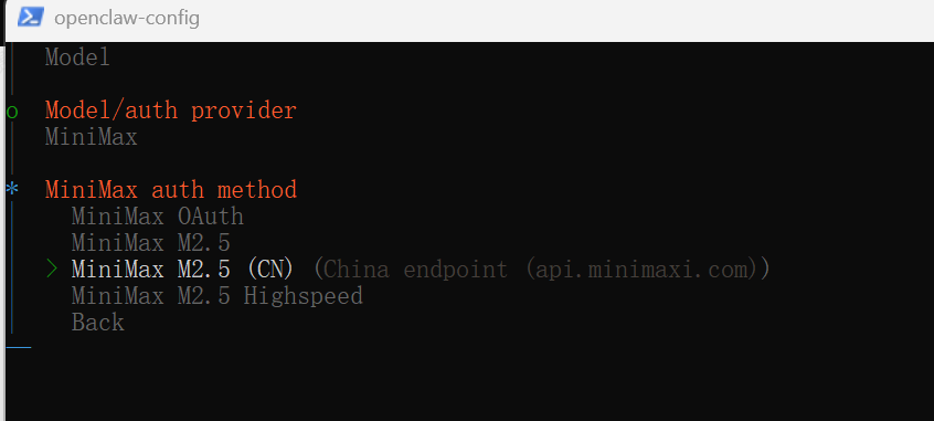 3.选择AI模型,因为我是订阅MiniMax模型,这里选MiniMax,按步骤把API Key粘贴进去就行啦