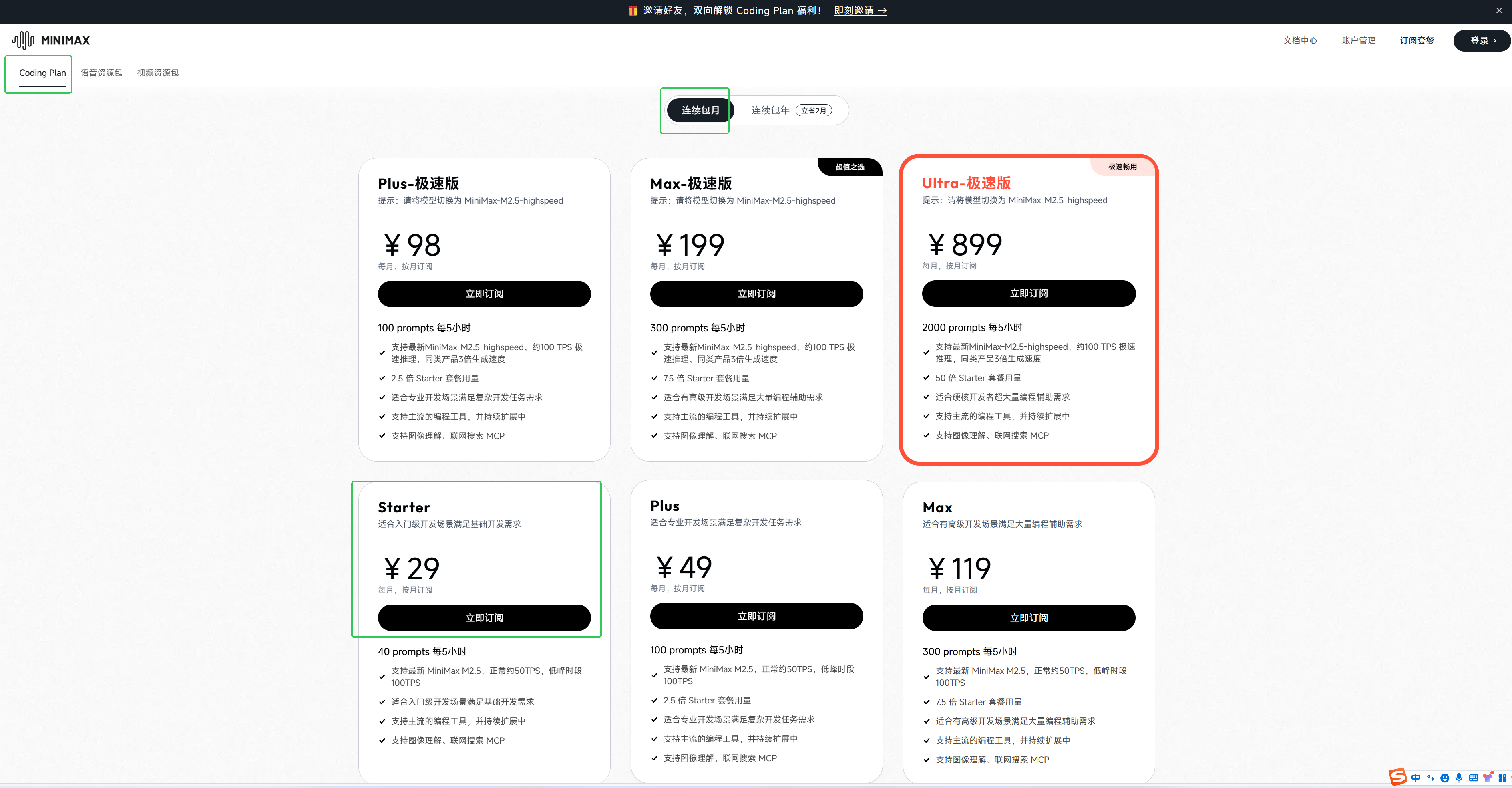 订阅地址:https://platform.minimaxi.com/subscribe/coding-plan