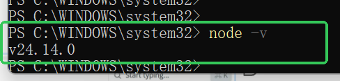 如果显示版本号大于v22则无需再安装Node.js,如下图所示